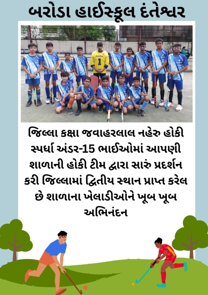 જિલ્લા ક્ક્ષા જવાહરલાલ નહેરુ હોકી સ્પર્ધા માંજલપુર સ્પોર્ટસ કોમ્પ્લેક્ષ, માંજલપુર ખાતે યોજાયેલ જેમાં શાળાની હોકી ટીમ અંડર-૧૫ ભાઈઓએ ભાગ લીધો હતો જે છે.