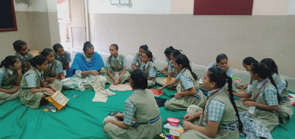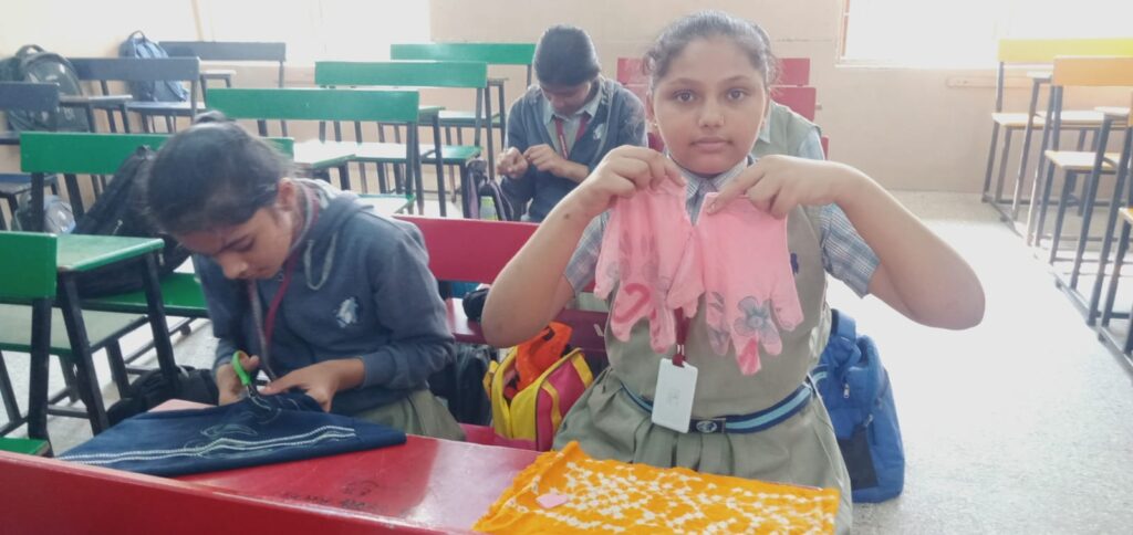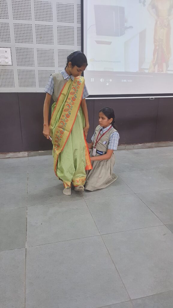 વિદ્યાર્થીનીઓએ સાડી પહેરવાનો પ્રયત્ન કર્યો.