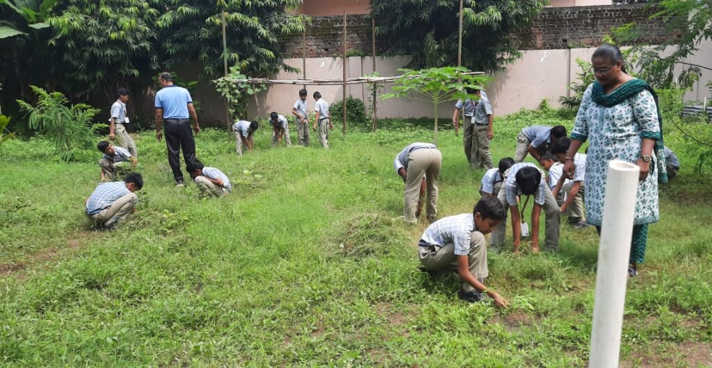 ખેતરમાં પાકની આસપાસ ઉગેલું નકામા ઘાસનું નીંદણ કાર્ય કર્યું.