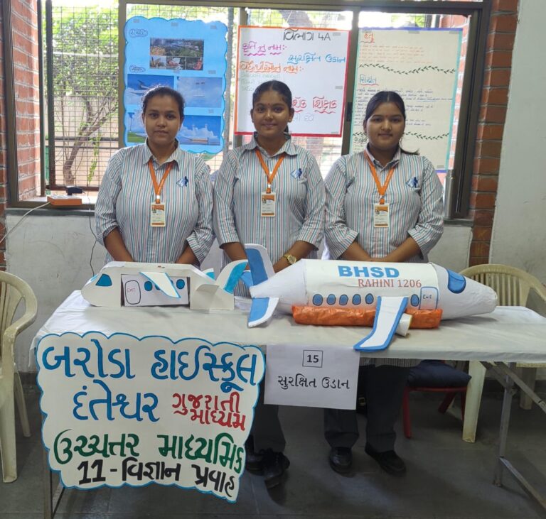 પ્રગતિની ઉડાન : ગણિત – વિજ્ઞાન પ્રદર્શન : ૨૦૨૫-૨૬ : કૃતિ-સુરક્ષિત ઉડાનથી શાળાની વિદ્યાર્થીનીઓએ ઉડાન ભરીને પ્રથમ ક્રમાંક મેળવેલ